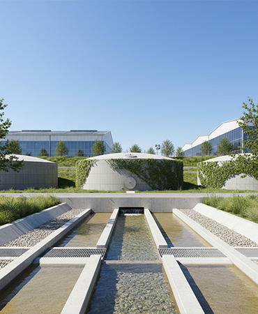 Garantizamos la continuidad operativa con pozos profundos y cisternas de alta capacidad, además de una red de drenaje pluvial independiente para la gestión eficiente de las aguas de lluvia.